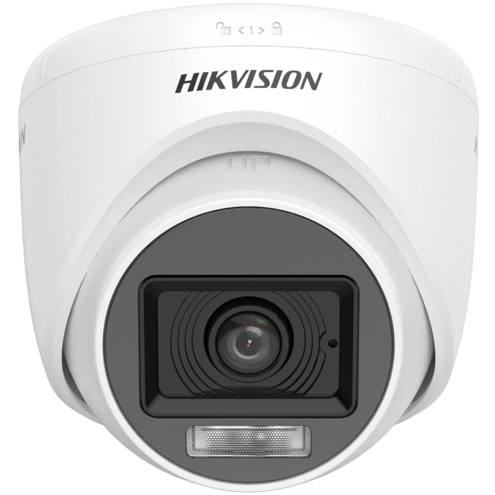 - تحتوي على إضاءة مزدوجة تمكن الكاميرا من التبديل تلقائيًا بين الأشعة تحت الحمراء (IR) للرؤية الليلية بالأسود والأبيض، والضوء الأبيض للرؤية الملونة في الإضاءة الخافتة، حتى مسافة 20 مترًا في كل نوع ميكروفون مدمج ونقل صوتي عبر الكابل
